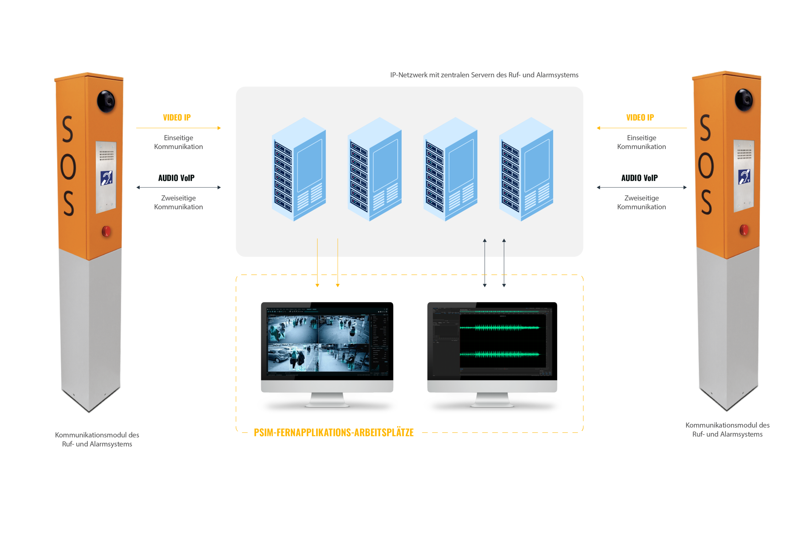 Das Interkomsystem ermöglicht die bidirektionale Kommunikation zwischen Fahrgästen und Bahnpersonal. Dank dieser Funktionalität können die Bediener auf Meldungen und Krisensituationen reagieren.